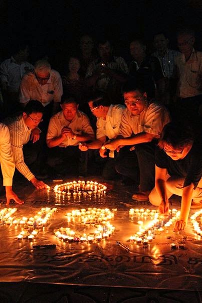 檳州行動黨主席曹觀友帶領行動黨領袖,與民眾手持蠟燭並拼出MH370字樣,默默為馬航MH370客機祈福。